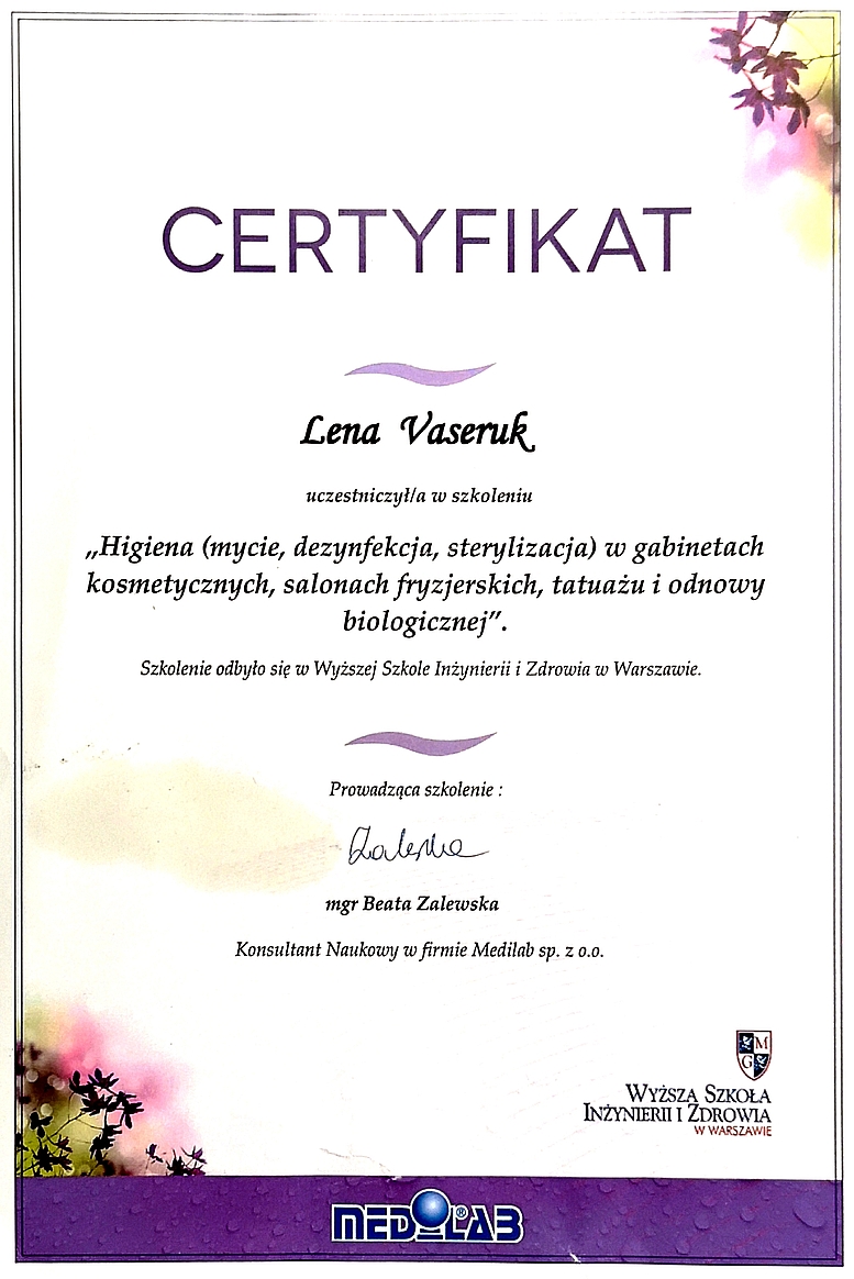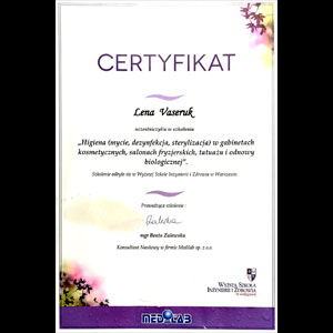 Olena Vaseruk - absolwentka Wyższej Szkoły Inżynierii i Zdrowia w Warszawie.